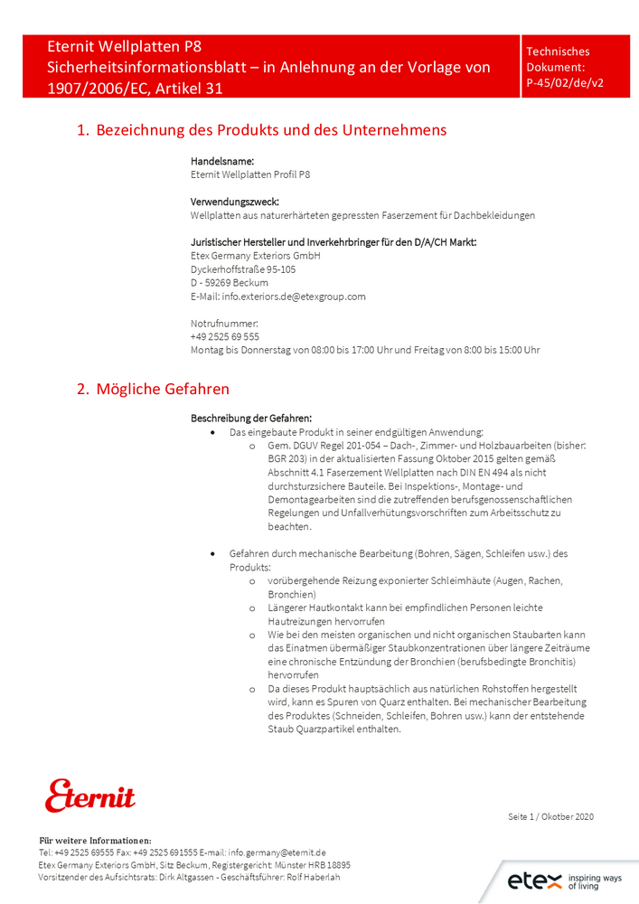 Sicherheitsinformationsblatt