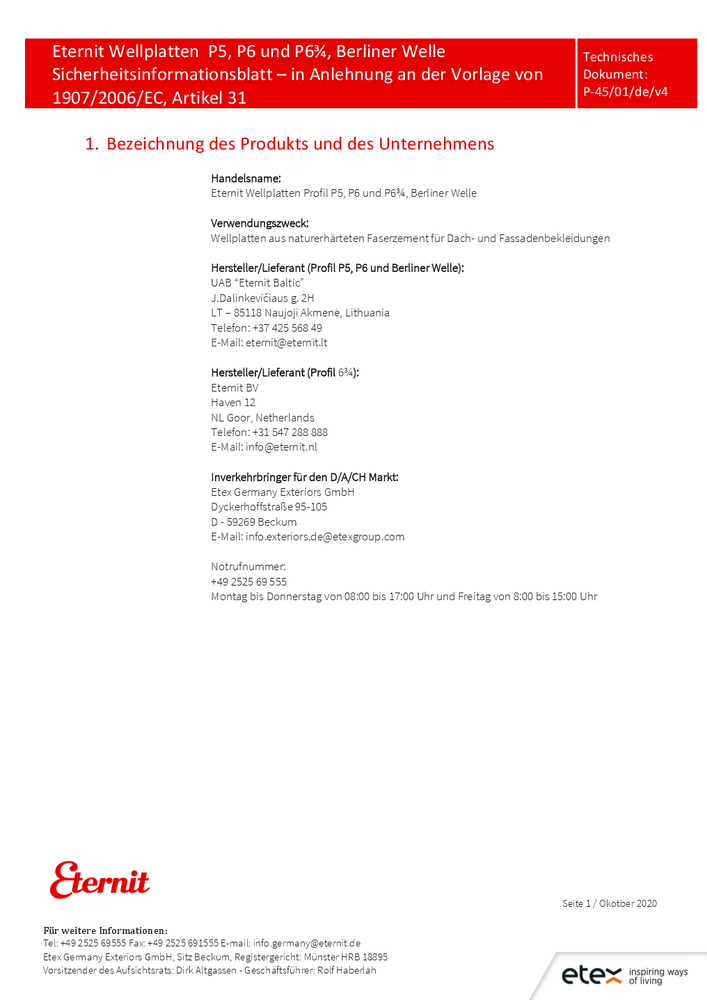Sicherheitsinformationsblatt